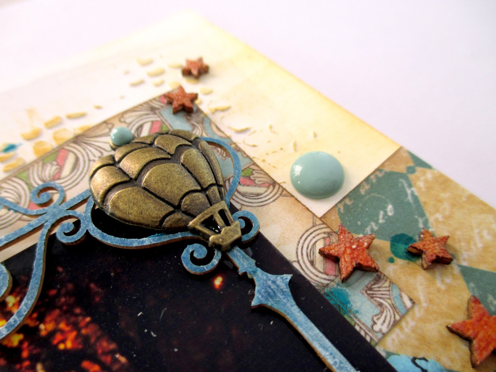 Como se ve en las fotos de detalle, tiene relieve pero poco, ya que va a ser parte del álbum de verano, que empecé con la portada que creé para el reto de Scrapaddictes de julio.